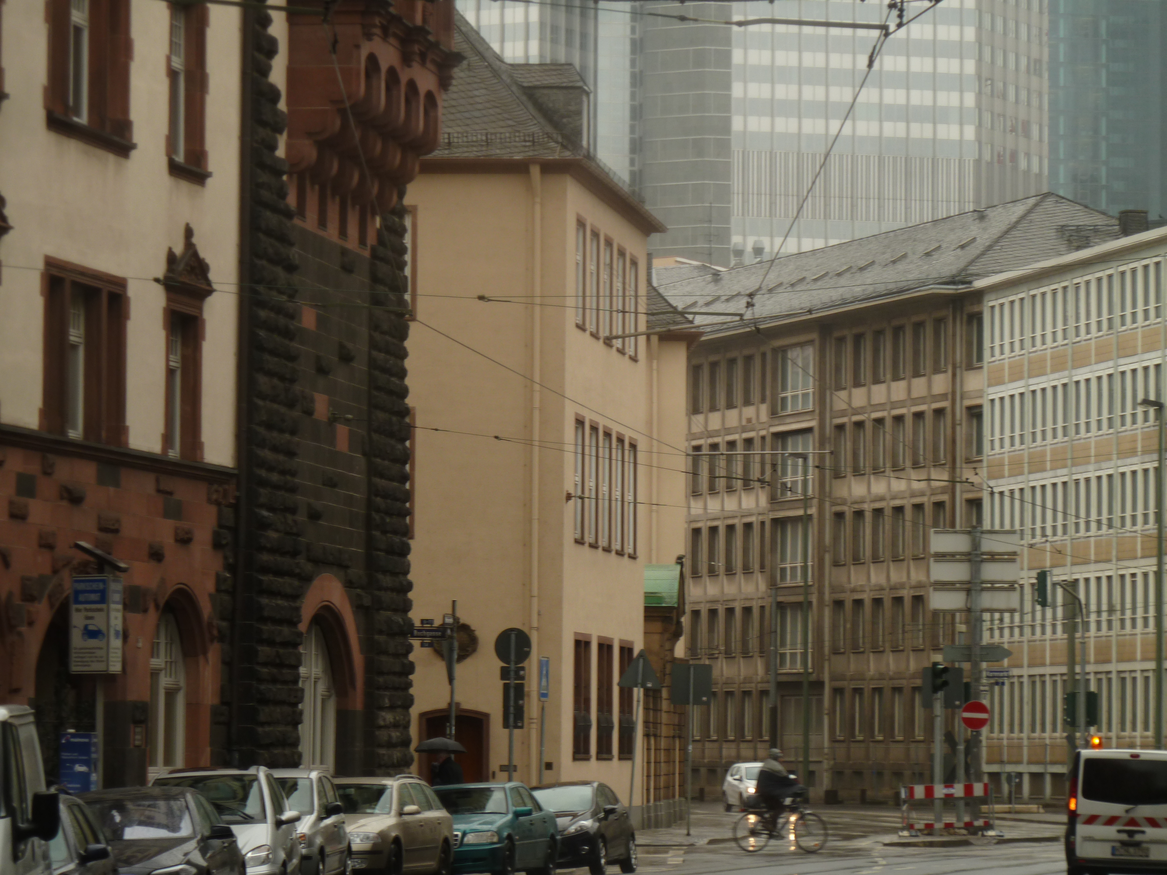 Naargeestigheid is troef in Frankfurt. Het centrum is een wederopbouworgie met veel achterhaalde en mislukte functionaliteit en vooral erg veel rechthoeken. Daardoor krijg je de indruk dat er hier een Mondriaan fanaat drie-dimensionaal carte-blanche heeft gekregen. Nergens is de connectie tussen de abstractie in het museum en de naoorlogse realiteit sterker en mooier dan hier.