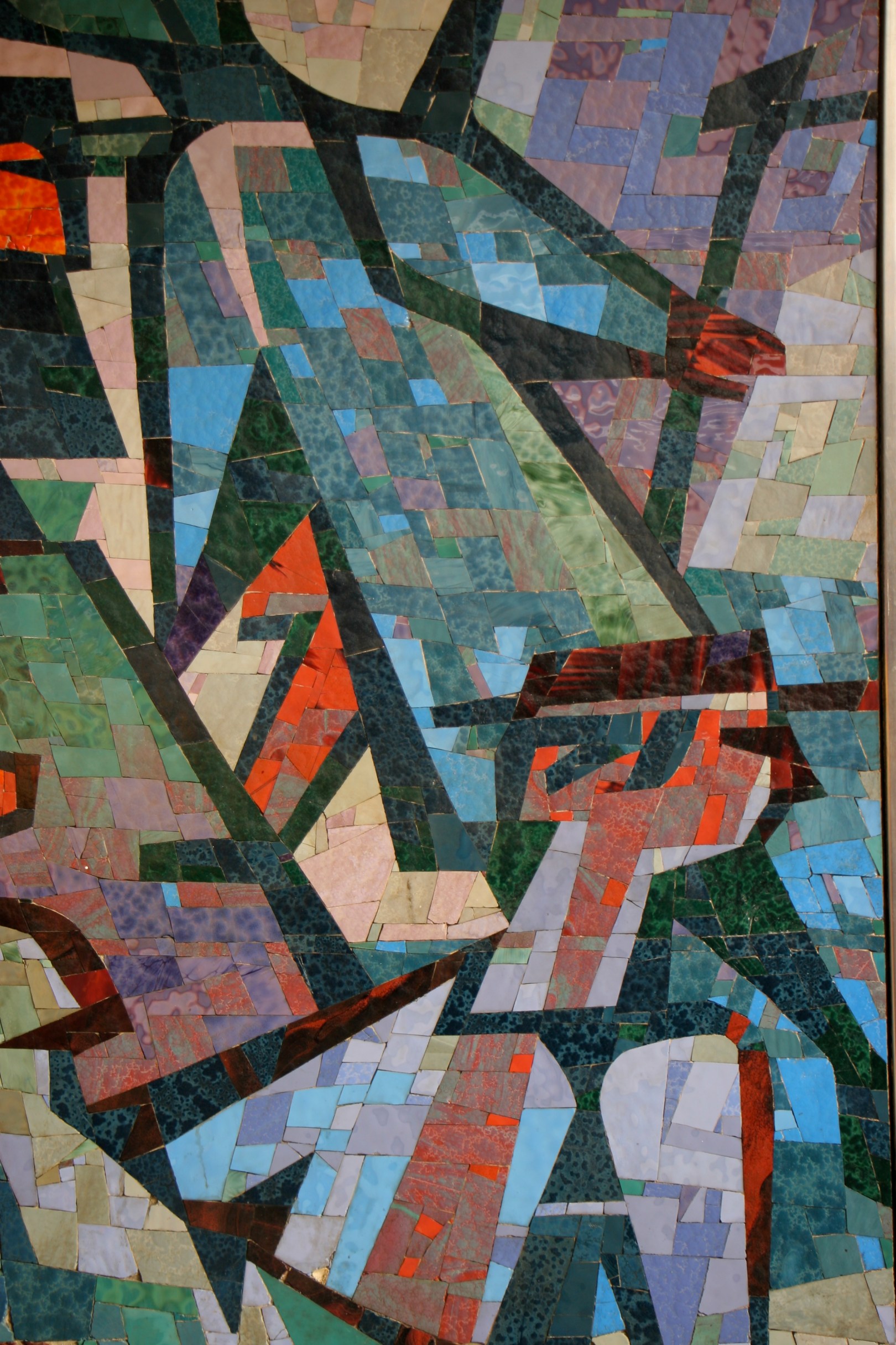 Het valt niet direct op hoe prachtig dit gemaakt is, maar dat mozaïek van gehaaste reizigers is een parel in de naoorlogse stationsarchitectuur die verder meestal uitblinkt in grauw grindbeton en nauwe gangen waar altijd de geur van zweet en tabak lijkt te hangen.