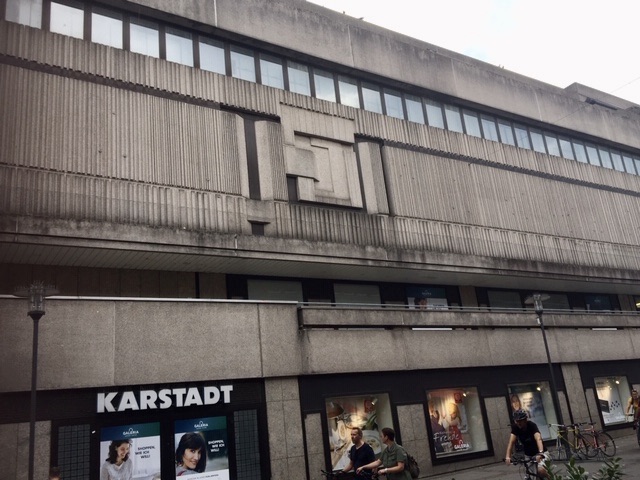 Ondanks wat kleine aanpassing is het gebouw nog prachtig behouden. De Karstadt laat zien wat je zoal met beton kunt doen. Platte vlakken, spannende figuren en onbegrijpelijke overhangen wedijveren om de aandacht van het winkelend publiek. De inhoud moet wel heel begeerlijk zijn geweest om mensen al 30 jaar na de oorlog weer een bunker in te lokken.