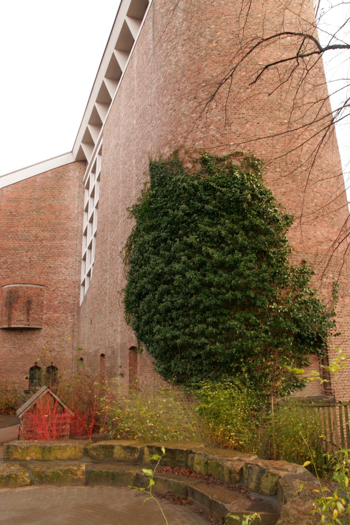 Op de Fusternberg in Wesel staat de Engelkirche- voluit: Friendenskirche zu den heiligen Engeln. Op het eerste gezicht een gewone wederopbouwkerk met een vermanende uitstraling zoals er honderden te vinden zijn-en niet alleen op deze site.