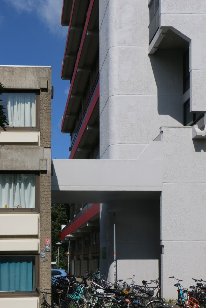 Net als feestende studenten houden deze torens op geen enkele wijze rekening met hun omgeving. De drie flats van het studentencomplex zijn daarmee mooie voorbeelden van brutalisme in Nederland.