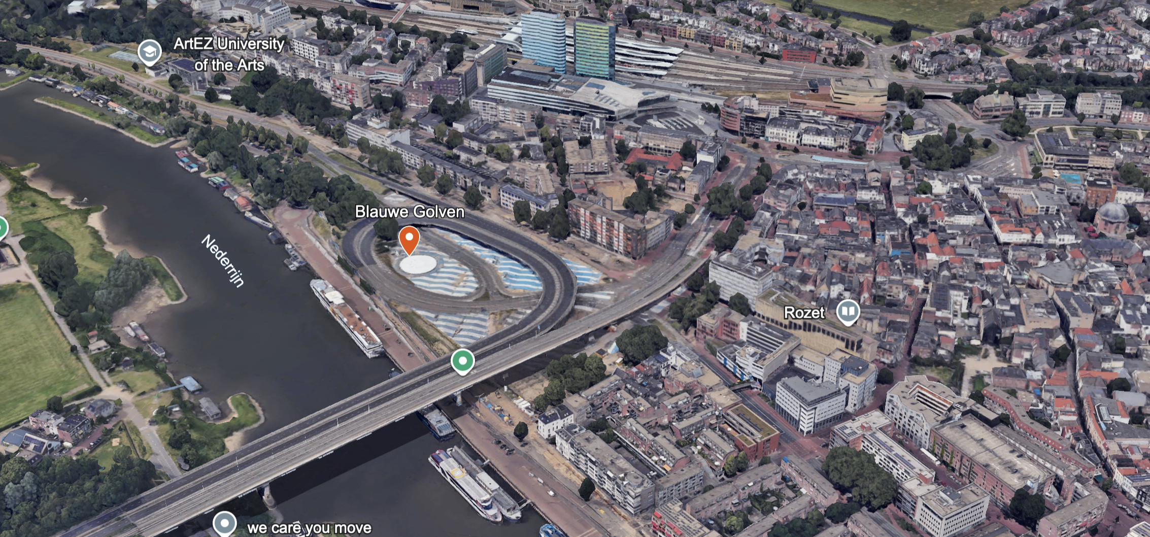 Het schreeuwend blauw en felle wit zijn inmiddels wel verdwenen. Ook beginnen de golven flinke gaten te vertonen. Het enthousiasme voor het project blijkbaar ook. Er was zelfs even sprake van dat het inmiddels als Grauwe Golven bekendstaande terrein zou verdwijnen ten gunste van veel groen. Er was echter zo’n gewenning aan dit stukje gijzelkunst ontstaan dat er zich een soort culturele versie van het Stockholmsyndroom begon te ontwikkelen. Met een meerderheid in de gemeenteraad werd besloten tot een renovatie, die rond de 9,5 miljoen euro gaat kosten.2 Ook partijen die het niet zo met kunst op hebben stemden voor. Voor dat losgeld heeft heeft Arnhem nog jaren lang een uniek kunstwerk in huis. Want het is van een beroemde kunstenaar! Fijn!