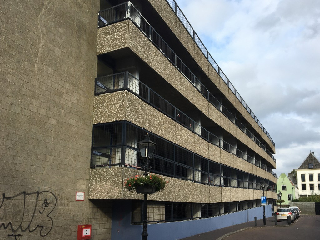 De doorbraken kwamen er nooit, maar als vingeroefening werd alvast een van de parkeergarages gerealiseerd. Hij ligt sindsdien als een dampend gedrocht in het middeleeuwse stratenpatroon tussen Springweg en Oude Gracht. Die oude infrastructuur was natuurlijk niet toegerust voor efficiënt autoverkeer uit de late 20e eeuw. Zo zorgt de garage al jarenlang voor overlast door auto’s die massaal door de nauwe straten richting logeeradres rijden. Een gemiddelde middeleeuwer wist dat je de duivel vooral aan zijn geur kon herkennen, en hij had het walmende betonen gedrocht dan ook onmiddellijk kunnen thuisbrengen. Het is onbekend of – behalve hun auto’s- ook de planners al een welverdiend plaatsje in deze hel hebben gekregen.