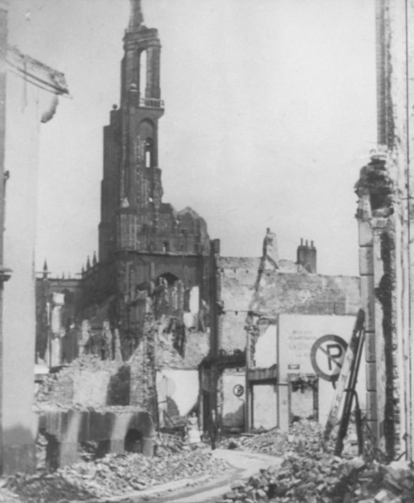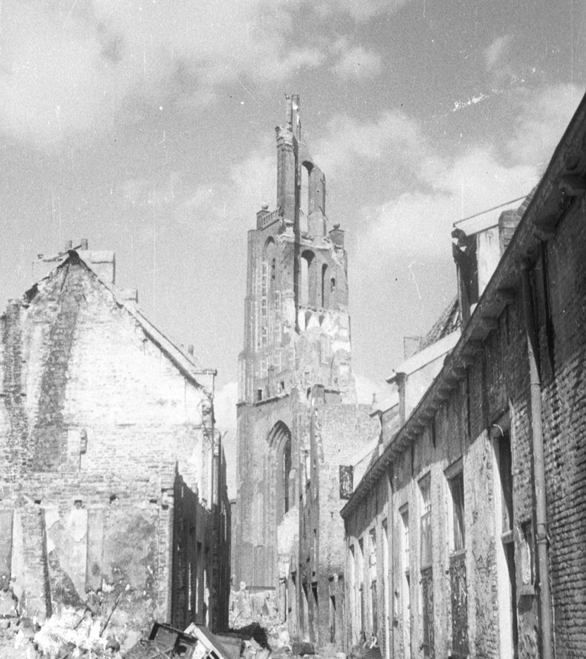 Arnhem werd in de oorlog voor een groot deel verwoest. Niet alleen tijdens de slag zelf, maar vooral daarna. De geallieerde bombardementen en de beschietingen door de Canadezen in 1945 vaagden een groot deel van het centrum weg. De toren van de Eusebiuskerk brandde af, stortte in en werd bij die gelegenheid letterlijk in tweeën gescheurd.