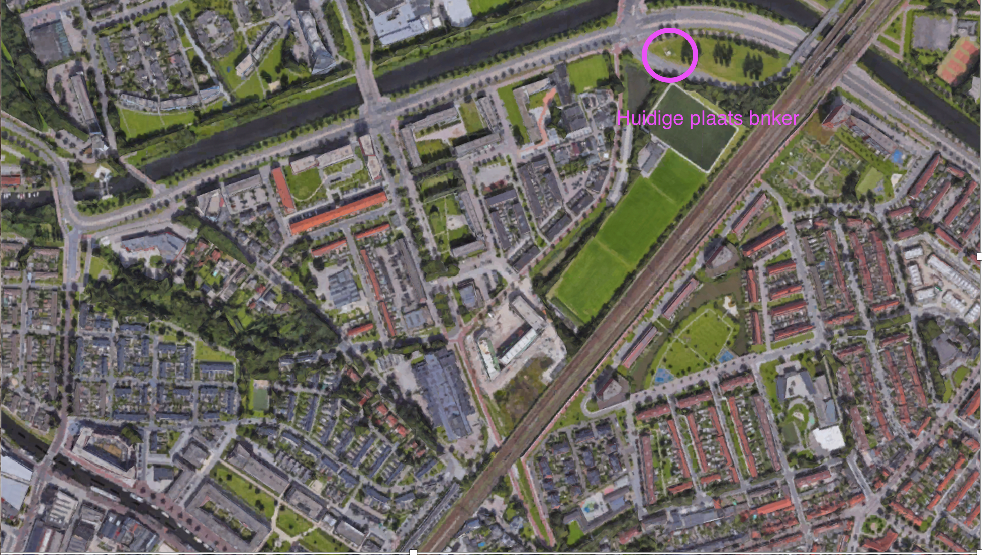 Deze bunker staat bij een kruispunt in Amersfoort. Zoiets is meestal niet bijzonder. Maar hier wel. Want wie er een kaart op na slaat uit de oorlog ziet dat er op dat punt nooit en bunker stond. Na de oorlog trouwens ook niet. Hoe kan dat?
