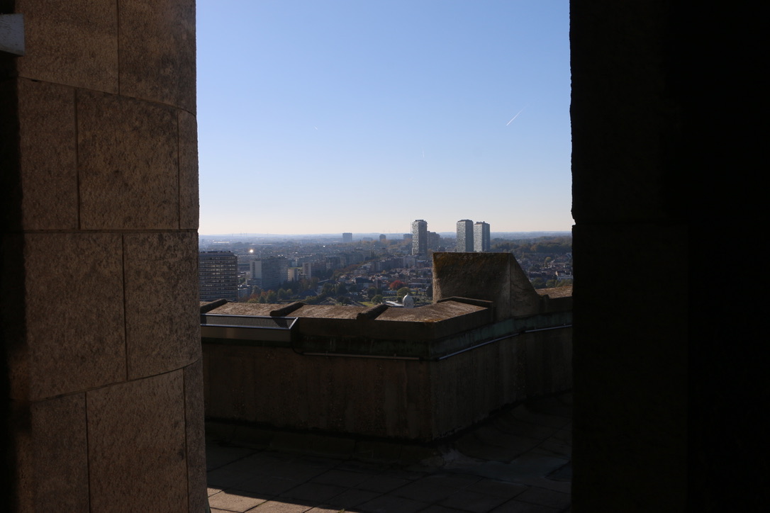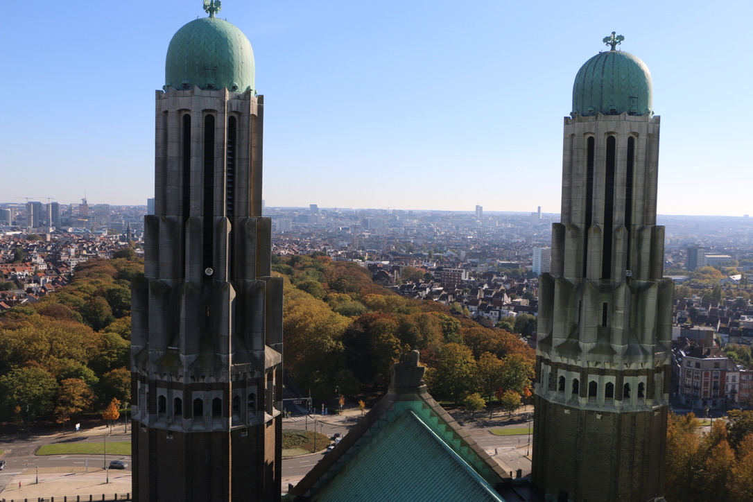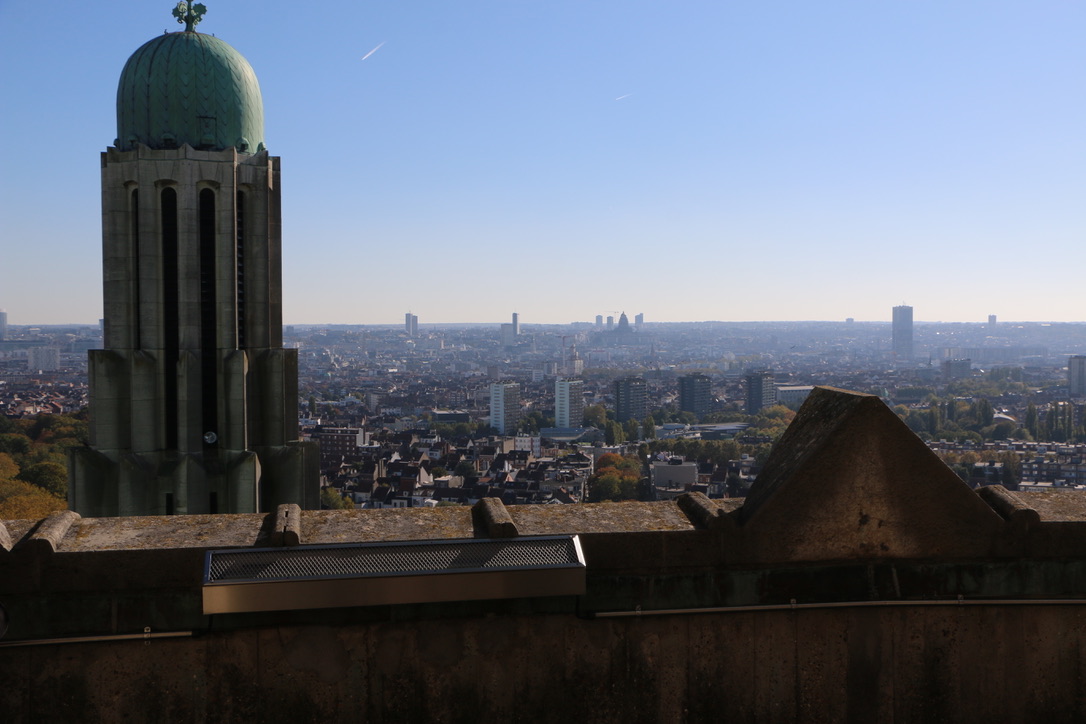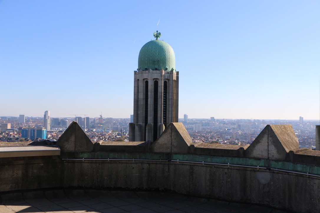 De basiliek is voorzien van 2 liften die je tegen een redelijke vergoeding naar het terras voeren. Daar ontvouwt zich een fantastisch panorama waar allerlei hoogte-, maar vooral ook dieptepunten van het Belgische experiment uitstekend zichtbaar zijn.