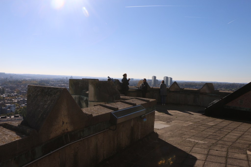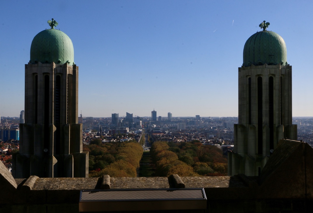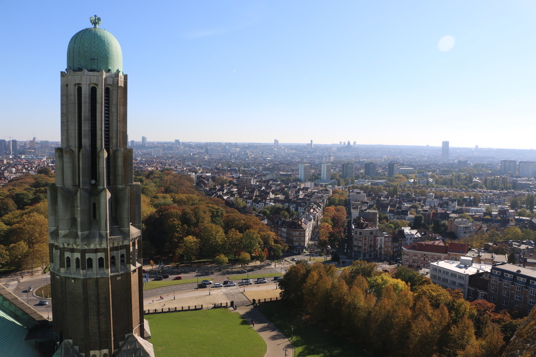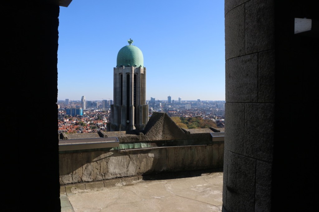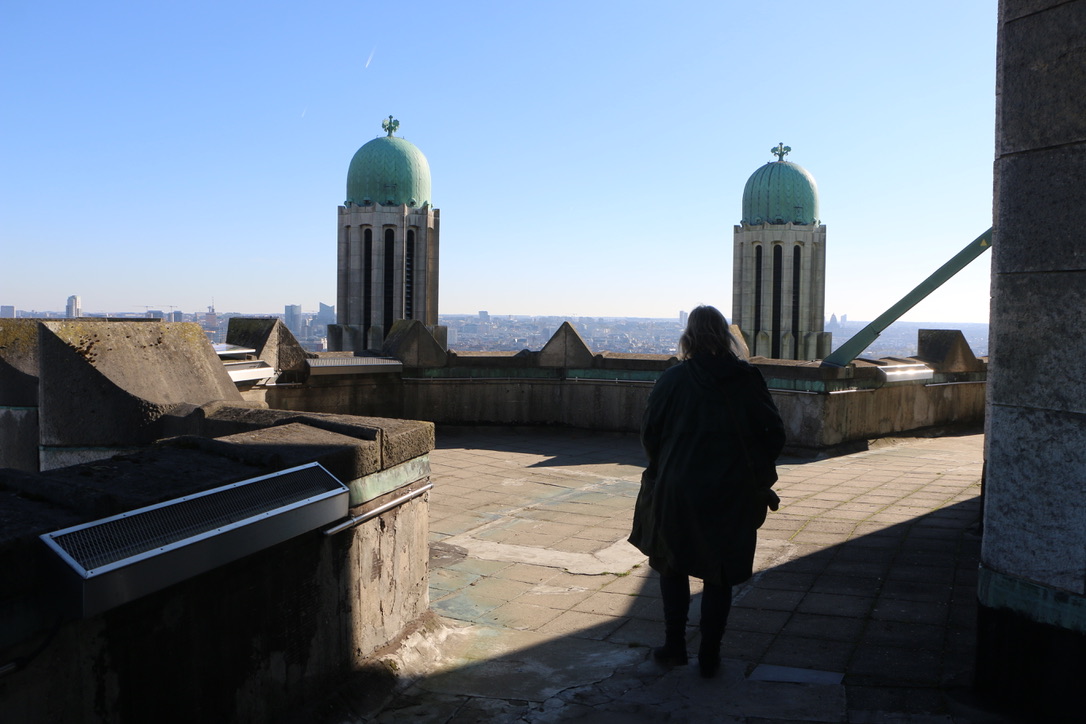 De basiliek is voorzien van 2 liften die je tegen een redelijke vergoeding naar het terras voeren. Daar ontvouwt zich een fantastisch panorama waar allerlei hoogte-, maar vooral ook dieptepunten van het Belgische experiment uitstekend zichtbaar zijn.