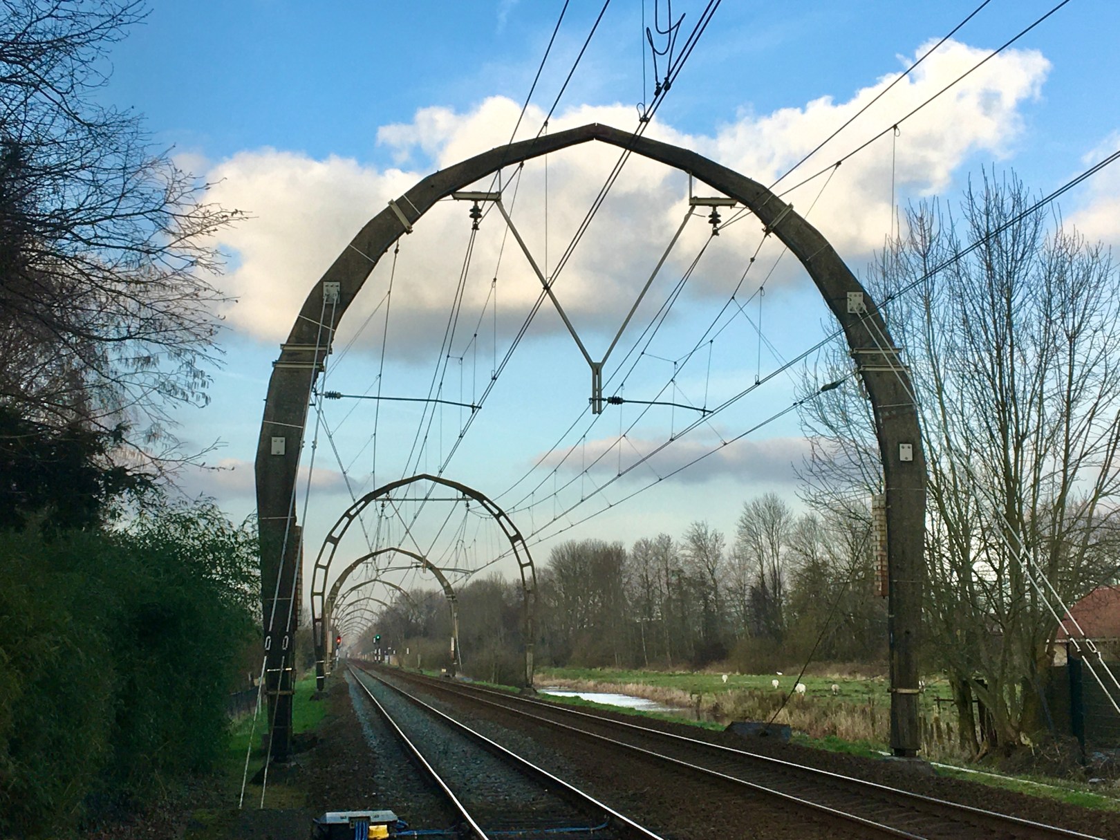 Op het spoor tussen Utrecht en Hilversum is iets vreemd aan de hand. De bovenleiding hangt hier niet aan de bekende oersaaie stalen masten, maar aan merkwaardige betonnen bovenleidingsportalen. Ze hebben een opvallende ronde vorm waardoor het lijkt alsof er een soort betonnen tunnel is gebouwd. Dat is niet het product van een plotselinge opwelling van artistiek bewustzijn bij de NS, maar een gevolg van schaarste.
