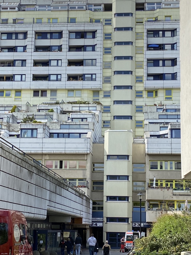 Het complex dankte zijn ontstaan aan het schreeuwende ruimtegebrek in het toen nog geïsoleerde West-Berlijn. Om zowel auto als burger een plaats te geven werd besloten ze te combineren in een bewoonbare tunnel. De snelweg werd ingepakt in een enorm betonblok van 600 meter lengrte dat als een soort Star-Wars ruimteschip plaats bood aan duizenden permanente passagiers. De reis ging naar utopia.