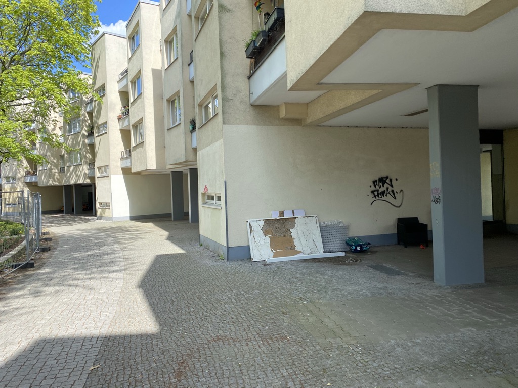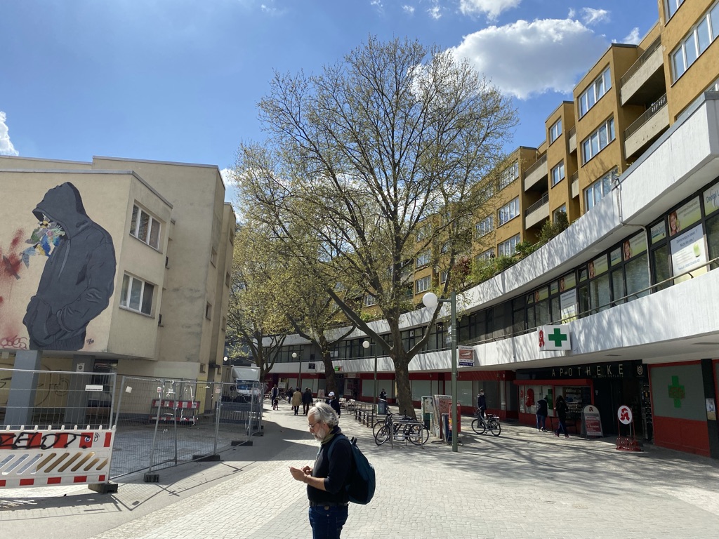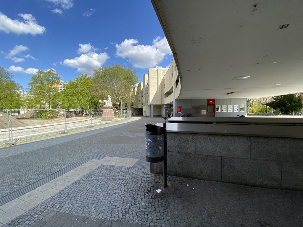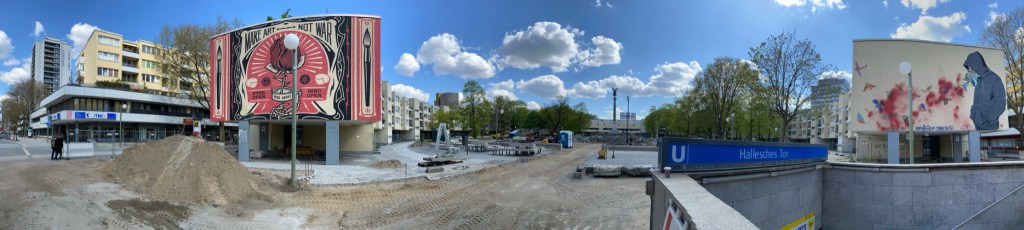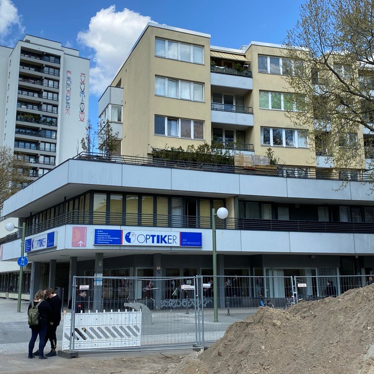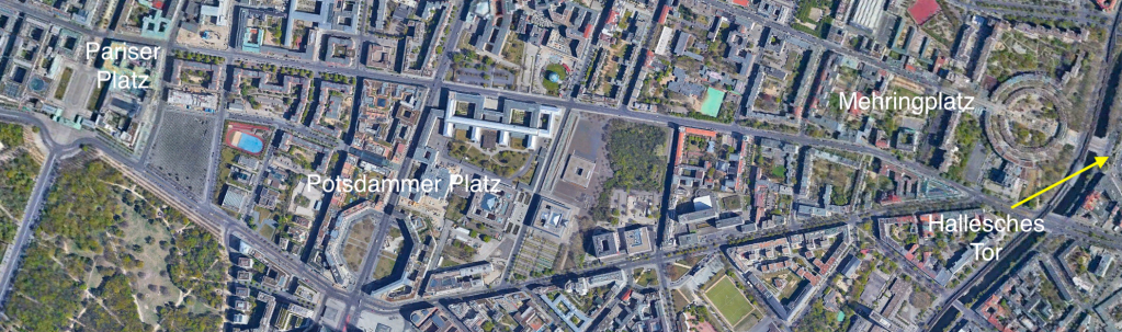 Wie na het lezen van deze post enthousiast de Mehringplatz als vakantiebestemming heeft gekozen, maar het toch wat teleurstellend vindt hoeft zich niet bekocht te voelen. Het geheel ligt een een tamelijk schokkende wirwar van gevaarlijke autowegen, strokenbouw, half ruïneuze gebouwen, stinkende parkjes en plukjes beschadigde en uit hun context gerukte Mietskasernen die de bombardementen overleefden. Links en rechts van de Friedrichstrasse liggen naargeestige betonnen appartementgebouwen zij aan zij met de nog steeds getraumatioseerde resten van de vooroorlogse bebouwing. Het station Hallesches Tor is een tamelijk abgefackt OV knooppunt waar het kopen van een literblik bier onmiddelijk aansluiting geeft met de locals in het parkje ernaast. Richting Kreuzberg laten de troosteloze straten van een strokenbouwwijkje uit de jaren’50 zien dat zielloze wederopbouw beslist niet het alleenrecht van de DDR was.