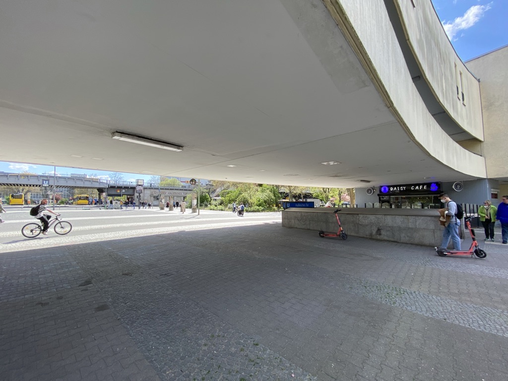 Wie zich in die gastvrije omgeving toch niet echt welkom voelt kan de architect dankbaar zijn dat hij pochte op de Durchlässigkeit van zijn creatie, want je kunt door allerlei duistere gangetjes zo de tweede cirkel in. Daar is het niet veel beter. Dezelfde types, maar nu gefaciliteerd door eettentjes en telefoonwinkels. Bovendien is het zo eenvormig dat je de hele tijd verdwaald. Ook hier zijn weer talloze gangetjes die je via de portalen onder de steeds hogere flats van kwaad naar erger voeren. Ben je eindelijk op de Friedrichstrasse beland dan wordt je getrakteerd op nog meer hoogbouw en een ranzig plein met shabby winkeltjes en allerlei types die het tegenwoordig zo zeldzame sfeertje oproepen van de West-Berlijnse drugsscene die Bahnhof Zoo in de jaren ’70 wereldberoemd maakte.