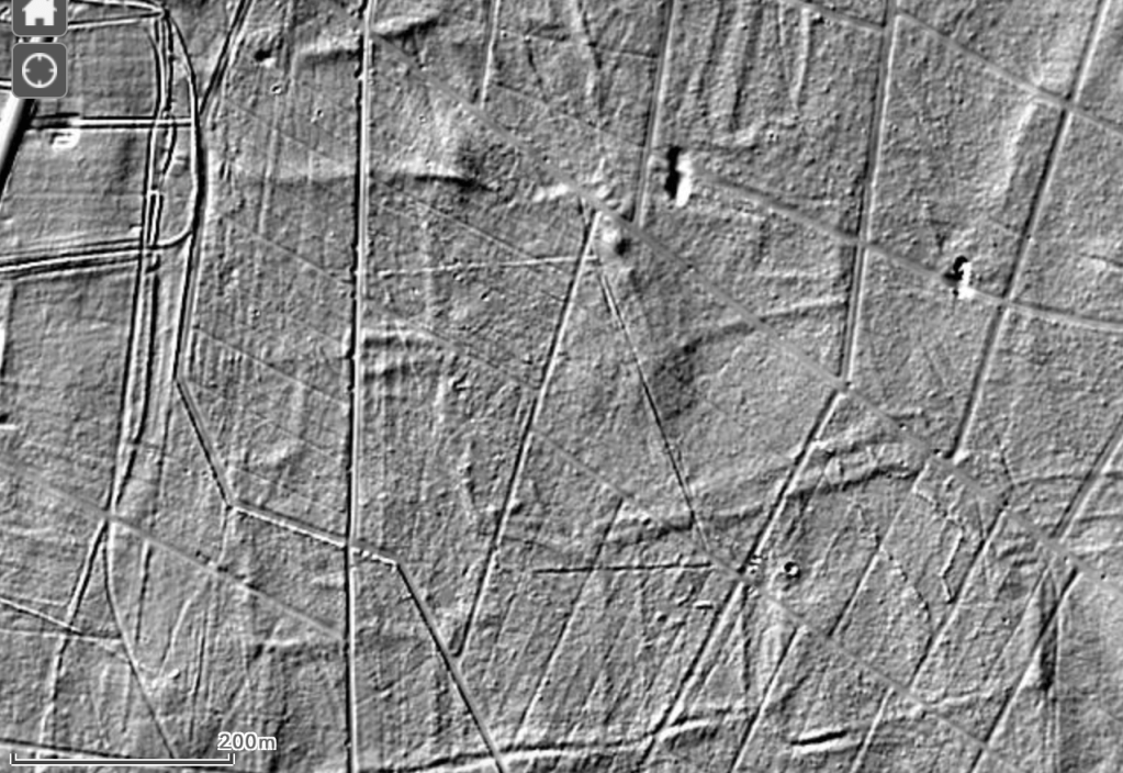 In Ermelo ligt zo’n kamp op de heide. Het was al lang bekend onder de naam ‘Heidensche Legerplaats’ totdat Holwerda rond 1920 definitief aantoonde dat we hier met Romeinse resten te doen hebben. Daar bleef het bij, totdat het enige jaren geleden door de nieuwe techniek van LIDAR mogelijk werd een reliëfkaart van het landschap te maken en bebouwing en bomen weg te rekenen. Die fantastische hoogtekaart bracht sporen aan het licht die anders nooit ontdekt zouden zijn. Bij een onderzoek naar grafheuvels in de omgeving viel een structuur op waarvan het vermoeden rees dat het hier ook wel een om een ander kamp zou kunnen gaan. Hij wijkt door z’n vorm af van andere menselijke structuren zoals akkerwallen die vergeleken met Romeinse aardwerken altijd wat amateuristisch aandoen.