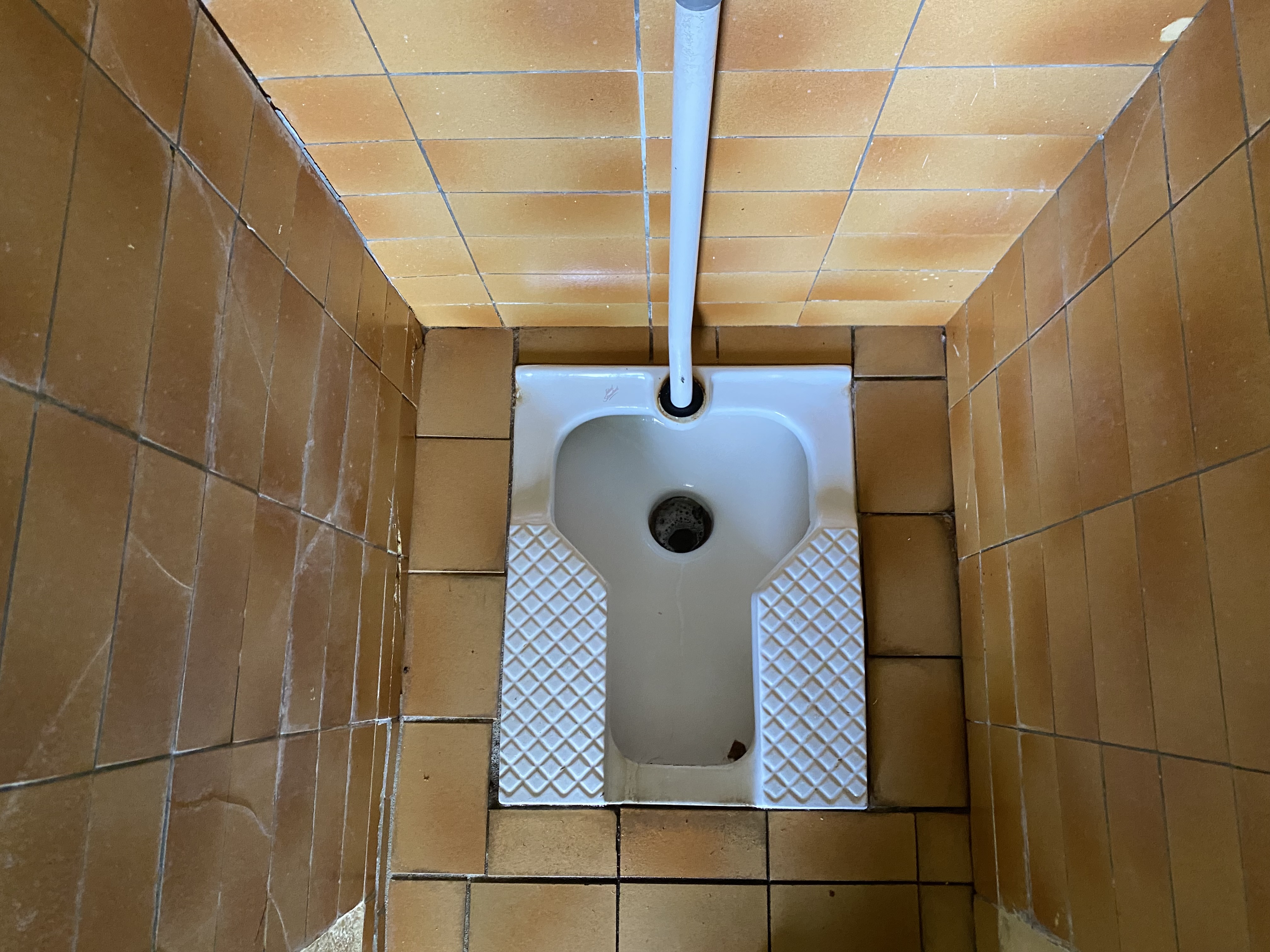 Het shockerende lege hok had een naam: hurktoilet. Bekend onder de naam Frans toilet en in Frankrijk onder de naam Turks toilet. De vorm had wat variaties, maar het principe was altijd hetzelfde en ontzettend simpel. In het midden was een gat. Daar moest het dus in. Aan weerszijden waren dan weer allerlei vindingrijke reliëfs die dat proces in goede banen moesten leiden. Hoe simpel ook, als goed getrainde gebruiker van het beschavingsproduct toiletpot met een poepdiploma van de kleuterschool op zak was dit toch wel even schrikken.