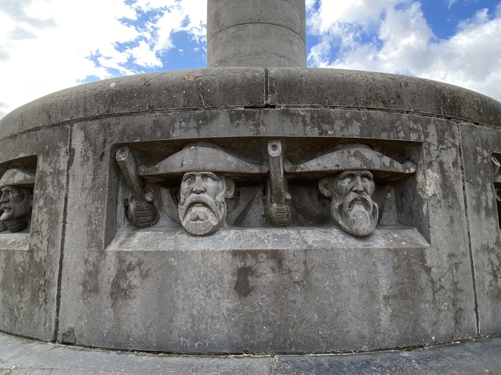 Van enige eigentijdse nuancering van het verleden is bij dit monument dan natuurlijk ook nog niets te merken. Van een wat karikaturale opvatting van heldenverering wel. Op een fiere zuil staat een onbekende dominee van middelbare leeftijd in een ongemakkelijke pose in de wind en probeert krampachtig op Lenin te lijken. Nader je de zuil, dan zie je dat de ritmische motieven op de sokkel eigenlijk portretten zijn. De woeste tronies dragen Kabouter Plop geweren en lijken op zeerovers die tamelijk stompzinnig door hun raampjes gluren. Het is echter geen Studio 100 product, maar een verwijzing naar de De Wet’s strijdmakkers. Typ je hun namen in op Google Maps dan sta je pardoes in een willekeurige Transvaalbuurt in een van onze grotere steden.