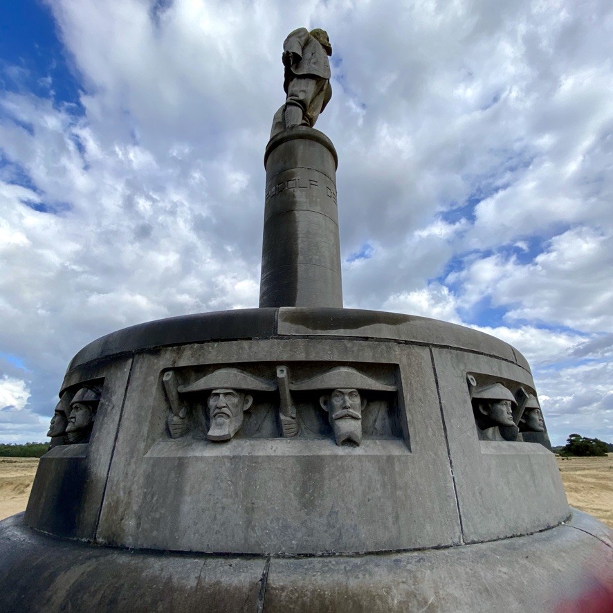 Van enige eigentijdse nuancering van het verleden is bij dit monument dan natuurlijk ook nog niets te merken. Van een wat karikaturale opvatting van heldenverering wel. Op een fiere zuil staat een onbekende dominee van middelbare leeftijd in een ongemakkelijke pose in de wind en probeert krampachtig op Lenin te lijken. Nader je de zuil, dan zie je dat de ritmische motieven op de sokkel eigenlijk portretten zijn. De woeste tronies dragen Kabouter Plop geweren en lijken op zeerovers die tamelijk stompzinnig door hun raampjes gluren. Het is echter geen Studio 100 product, maar een verwijzing naar de De Wet’s strijdmakkers. Typ je hun namen in op Google Maps dan sta je pardoes in een willekeurige Transvaalbuurt in een van onze grotere steden.