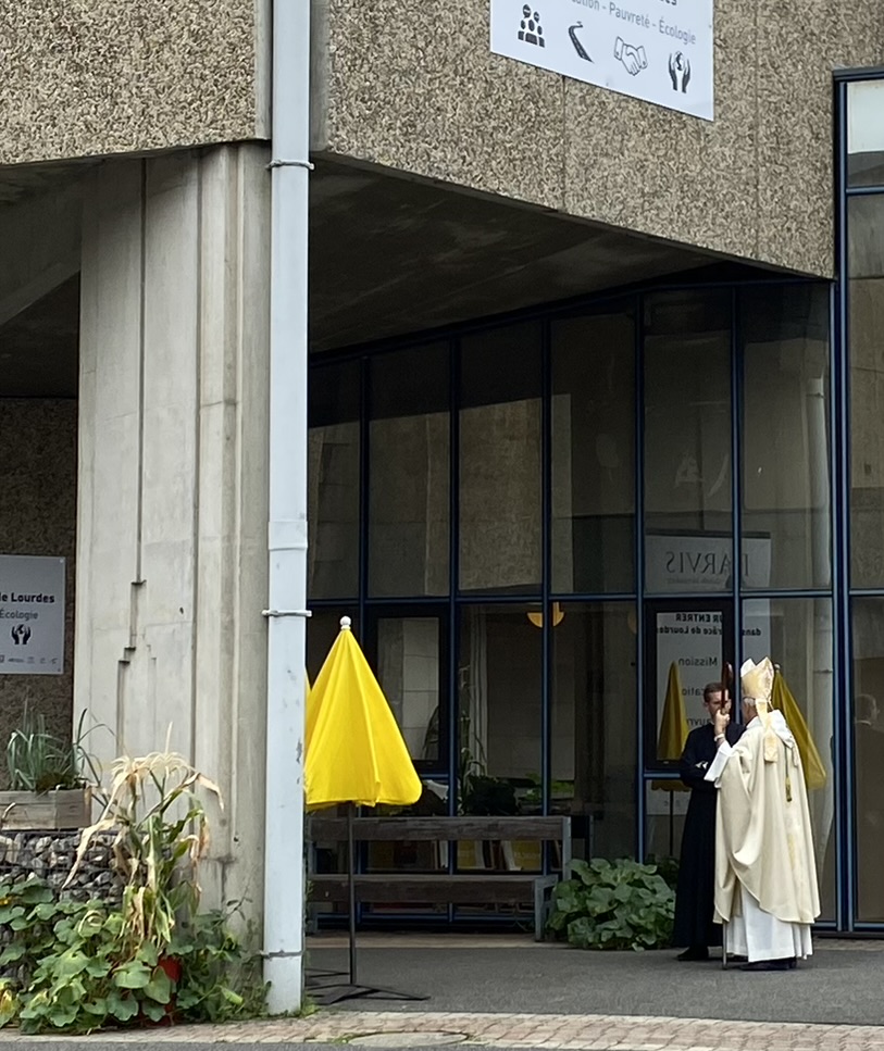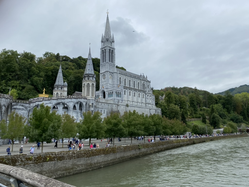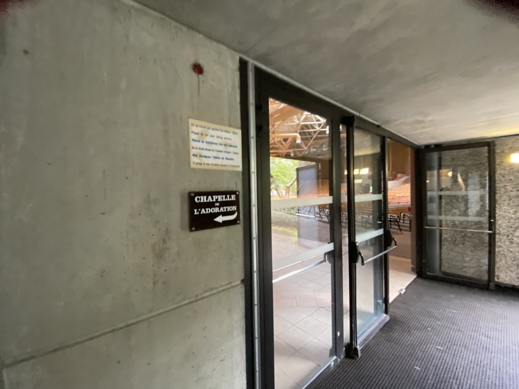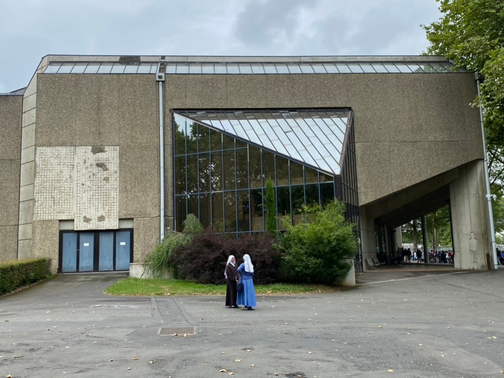 Tussen alle kitsch in Lourdes staat een gebouw dat uit de toon valt. Het lijkt op een Hoog Catherijne-achtig winkelcentrum dat zijn beste tijd gehad heeft. Hoewel je in zo’n omgeving instinctief direct op zoek wil gaan naar goedkope gymschoenen is er niets nuttigs te koop. Het assortiment beperkt zich tot wonderen en water. Het is namelijk en kerk.
