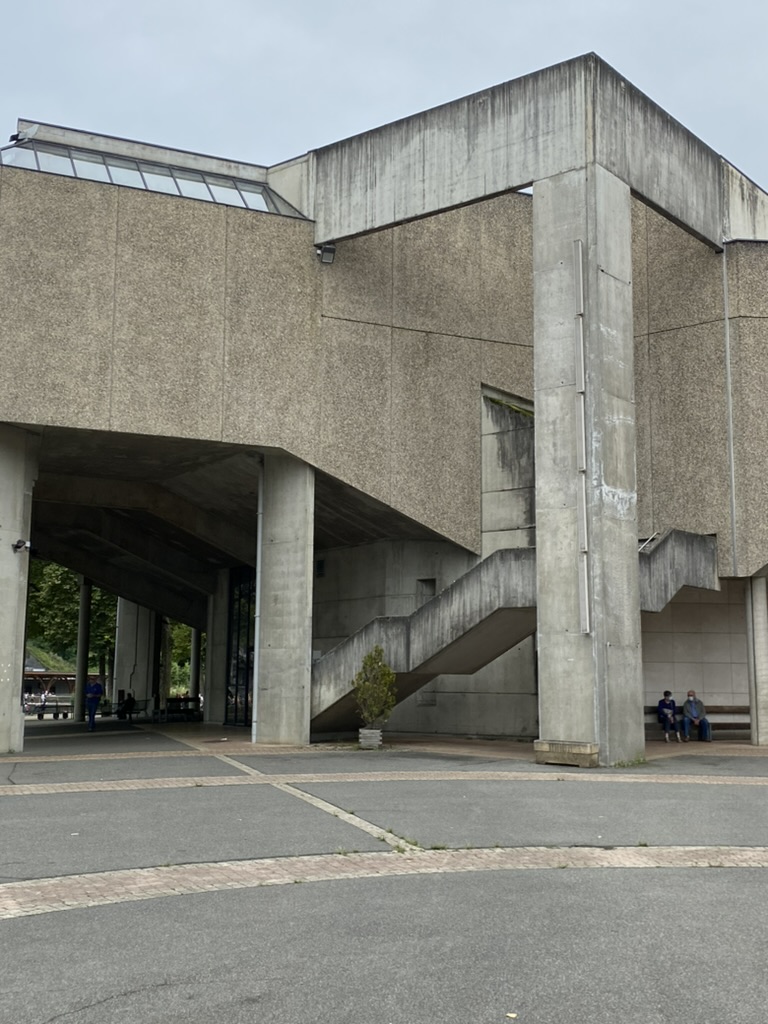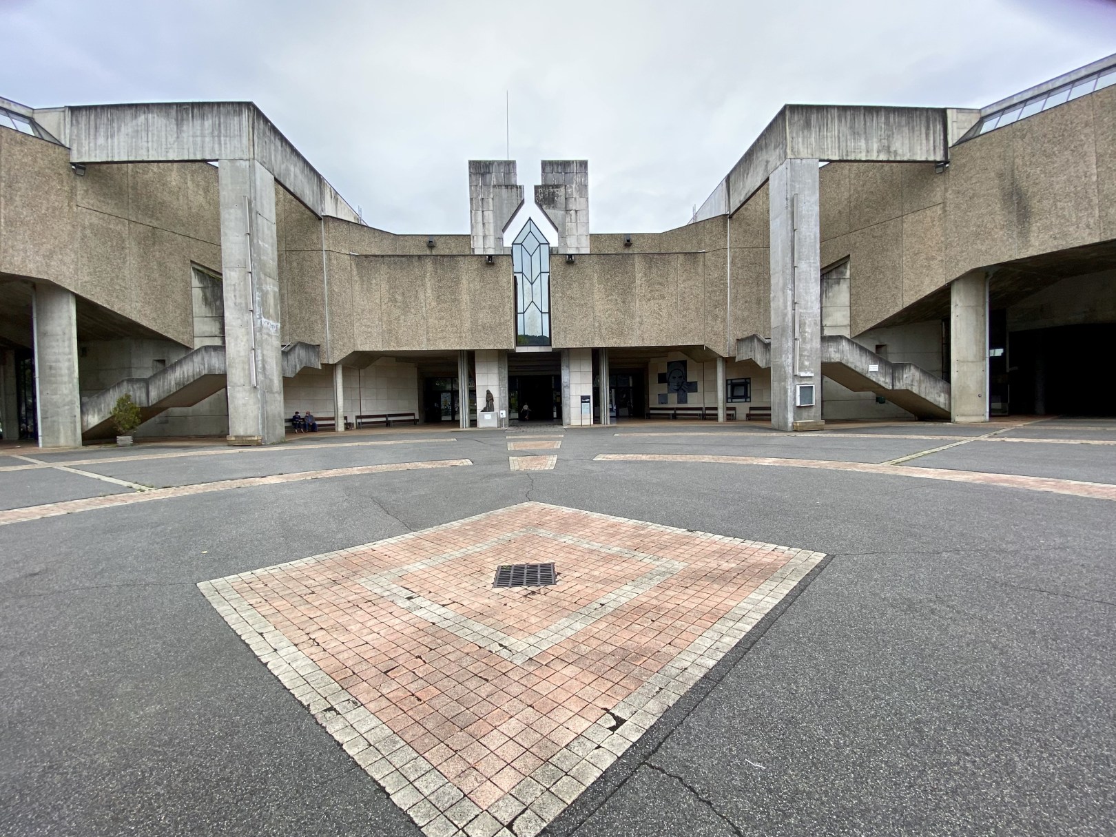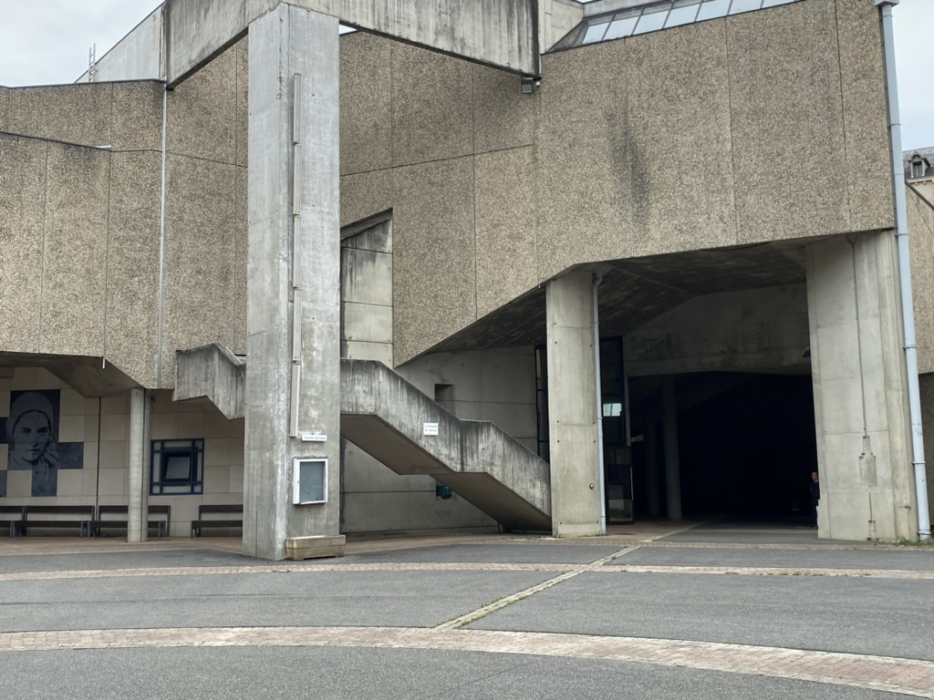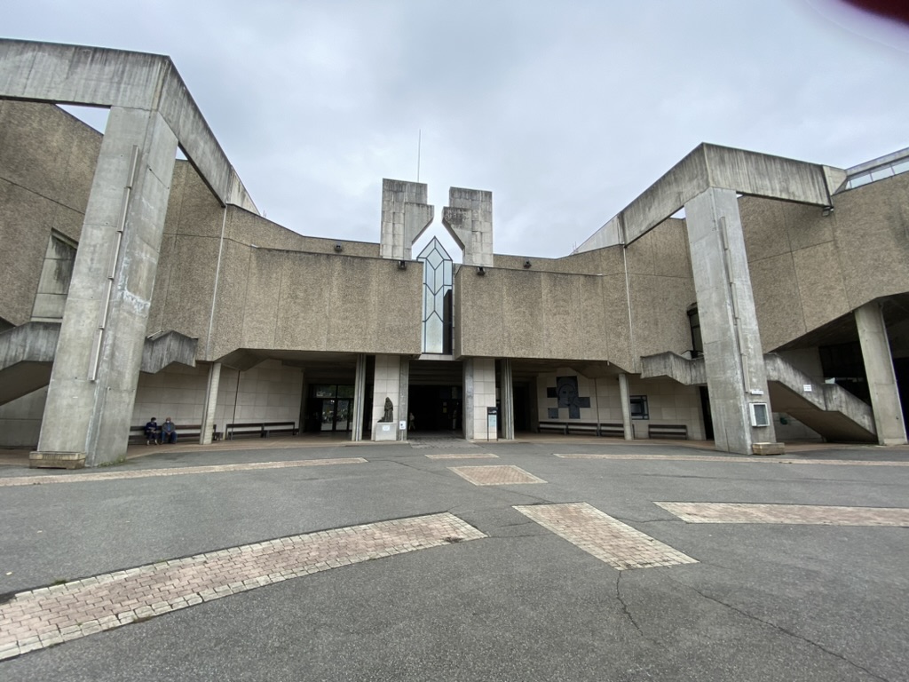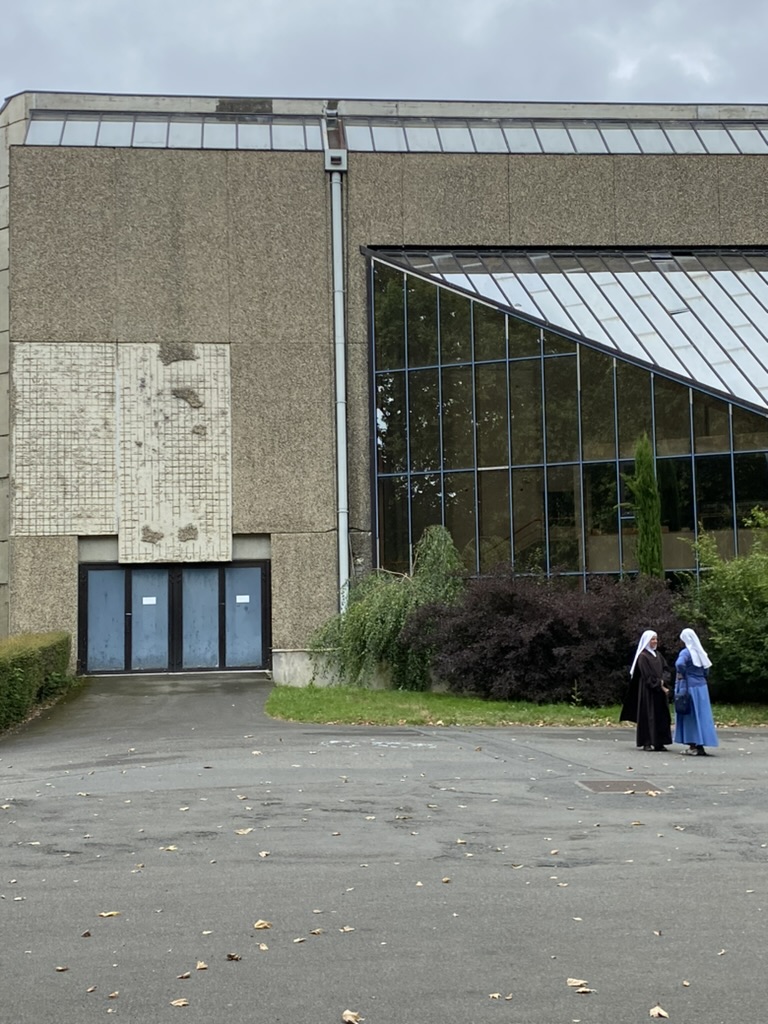 Buiten wordt er helaas weer vol overgave muziek gepleegd en rijst de vraag waarom de RK kerk nooit fatsoenlijk geschoolde zangers heeft ingehuurd. Je bevindt je in een soort dystopisch verlaten winkelcentrum waar de enige bezoekers nonnen en een verdwaalde bisschop zijn. Vanuit van die betonnen geloofsuiting zie je aan de overkant een Harry-Potter achtig bouwwerk dat duidelijk maakt hoe het allemaal begonnen is.