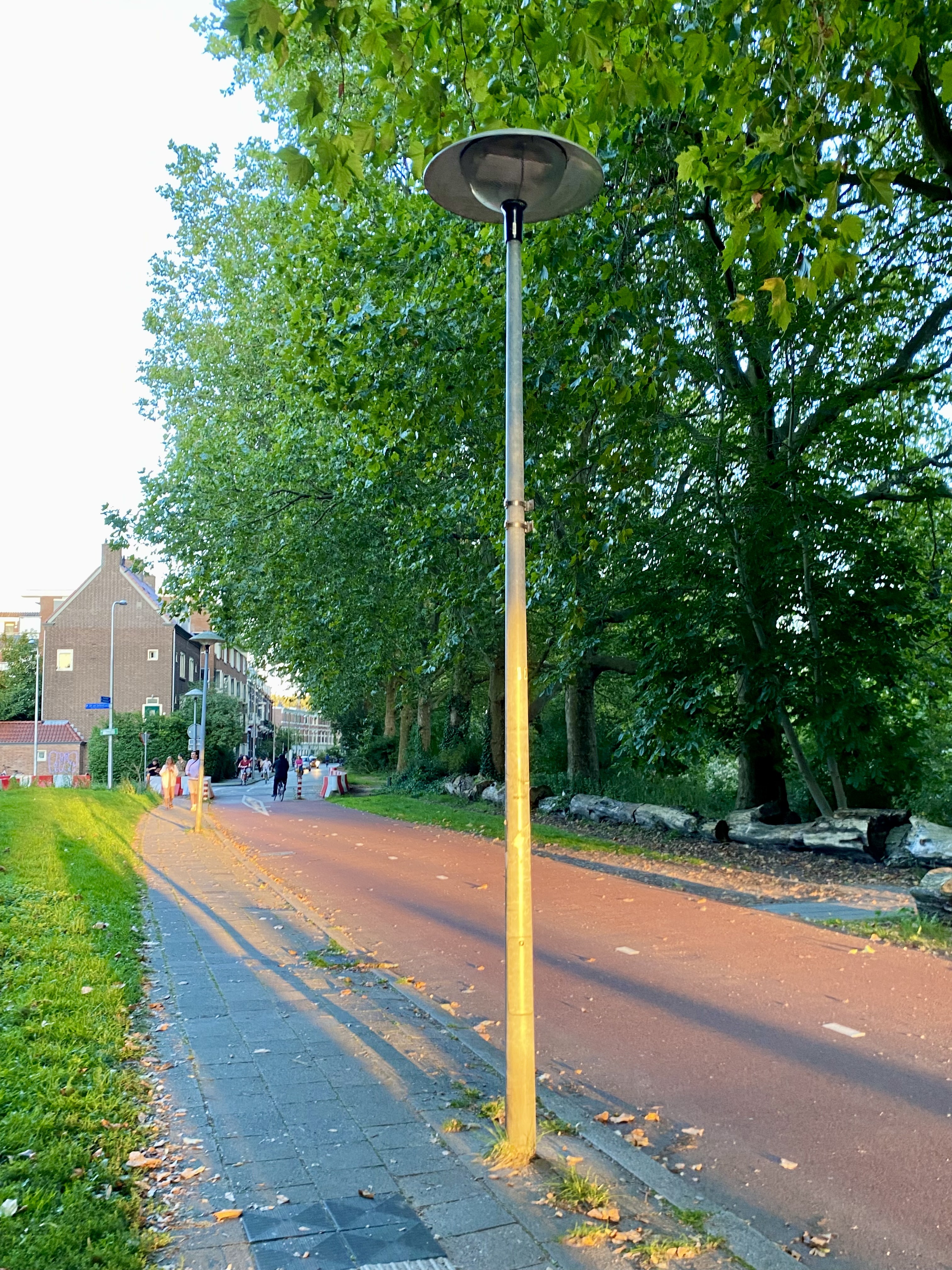 De langste vertegenwoordiger van het straatmeubilair is ongetwijfeld de lantaarnpaal. Je hebt ze in soorten en maten, maar er is er eentje die gerust de Jezus van de straatarchitectuur genoemd mag worden. Het is de kwikdamplamp die in de jaren tachtig vrijwel alle nieuwbouwwijken sierde. Hij vervulde de rol van geduldige speelkameraad en gaf zo licht en troost de toen ook al wat saaie avonden in een nieuwbouwwijk. Je kon hem namelijk uittrappen.