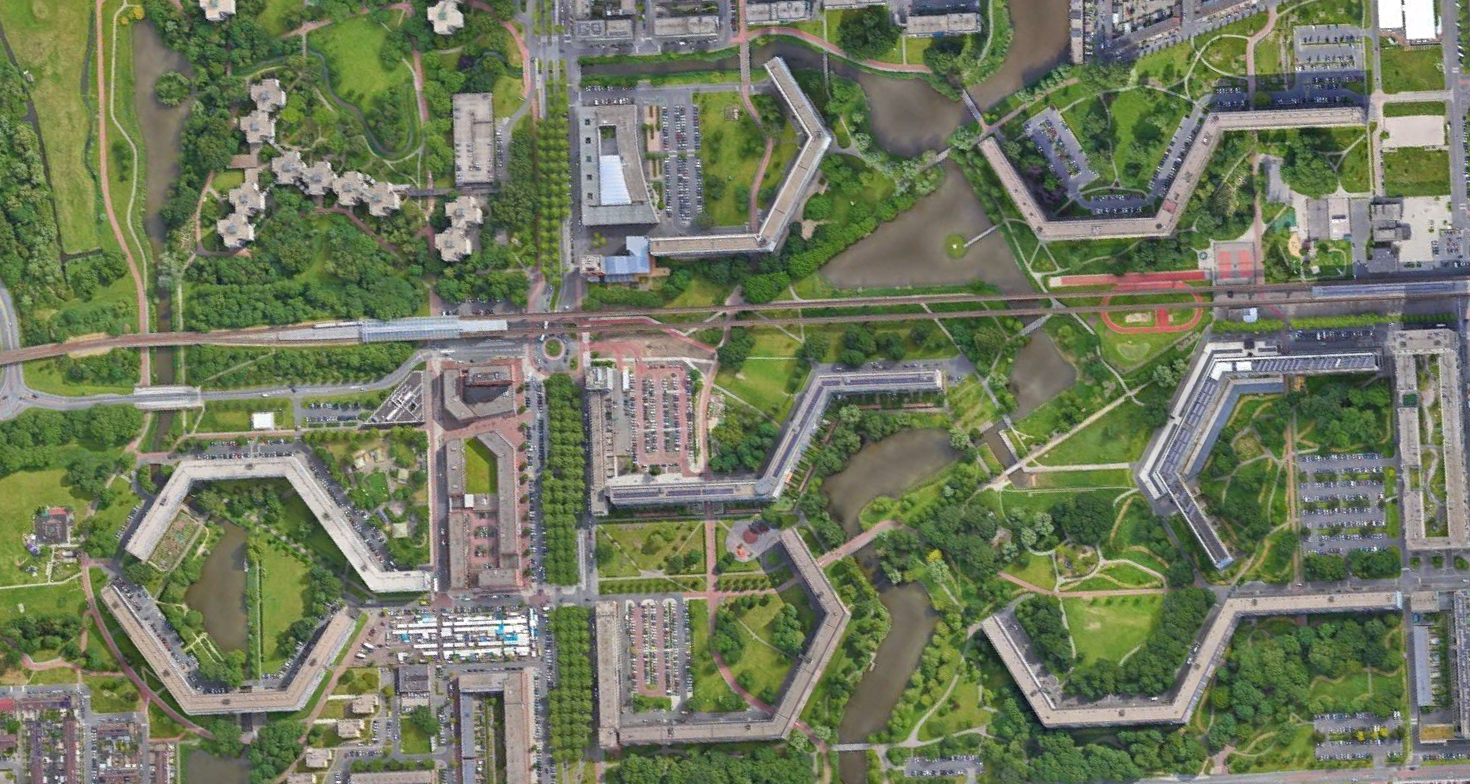 Cirkels van de UNO en honingraat van de Bijlmer