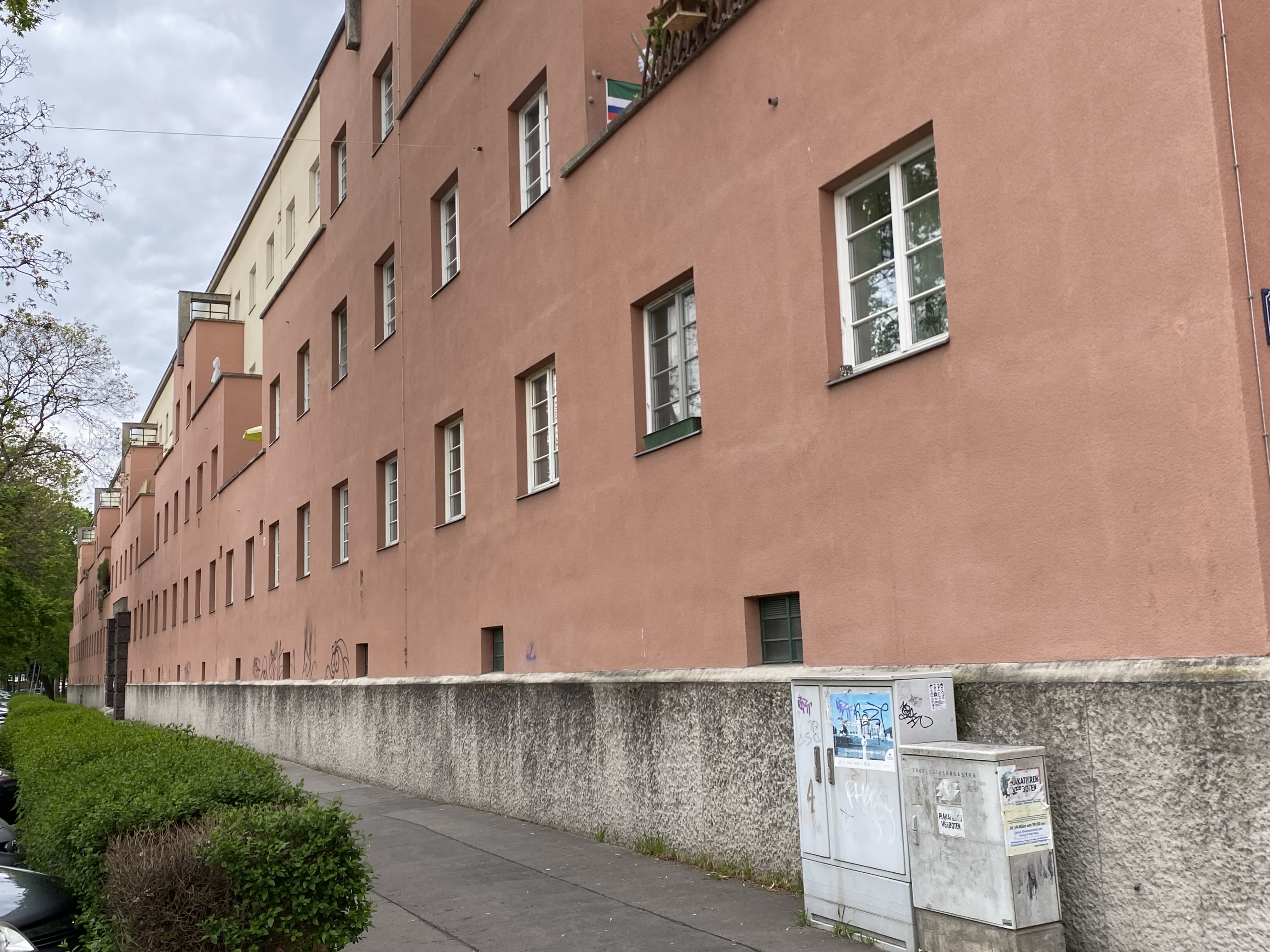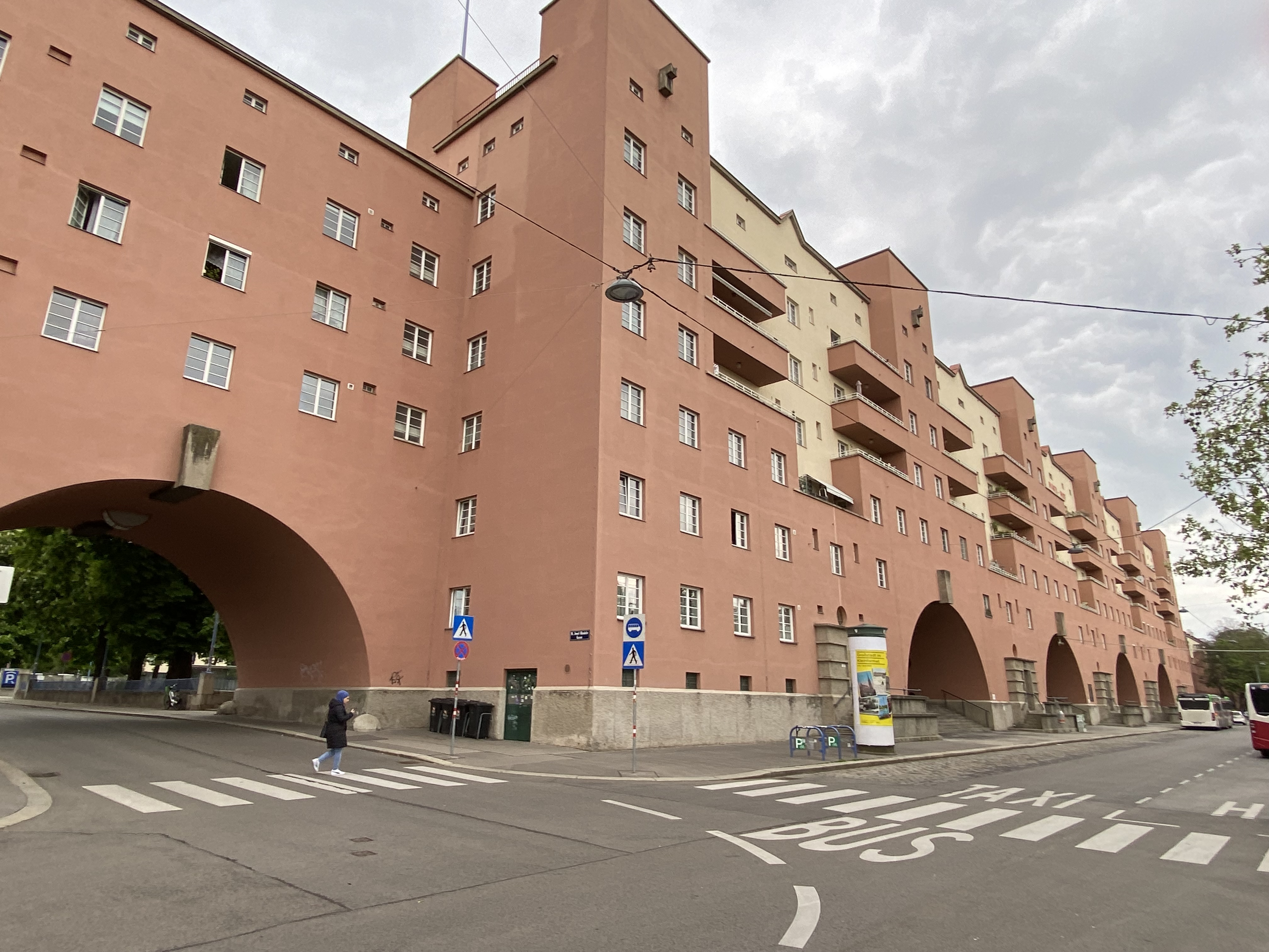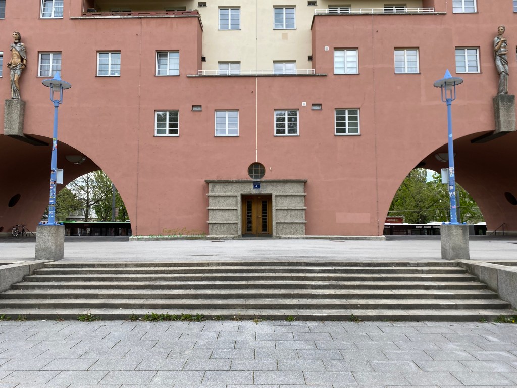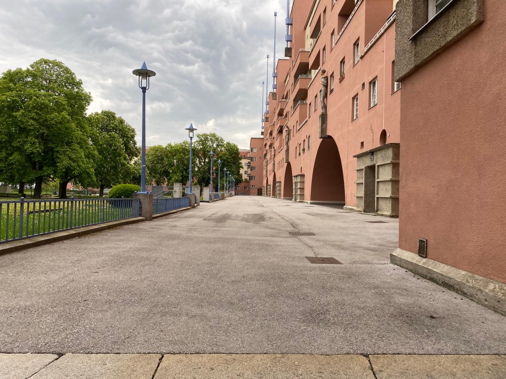 De Karl Marx Hof werd tussen 1927 gebouwd naar een ontwerp van de architect Karl Ehn. Het is met een lengte van zo’n 1050 meter een van de langste samenhangende woongebouwen ter wereld. De ikonische middenpartij (die op deze foto’s is afgebeeld) wordt geflankeerd door twee vleugels die elk een grote binnenhof omvatten. Het aantal wooneenheden is na een renovatie eind vorige eeuw-waarbij woningen werden vergroot en van eigen sanitair werden voorzien- wat afgenomen.