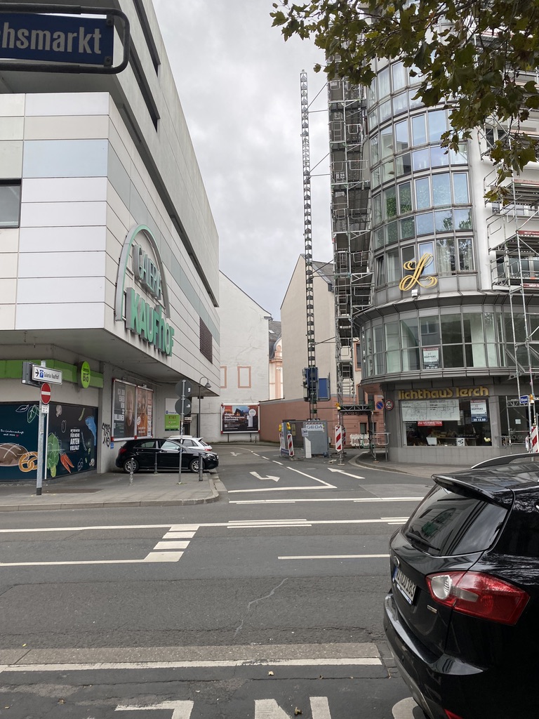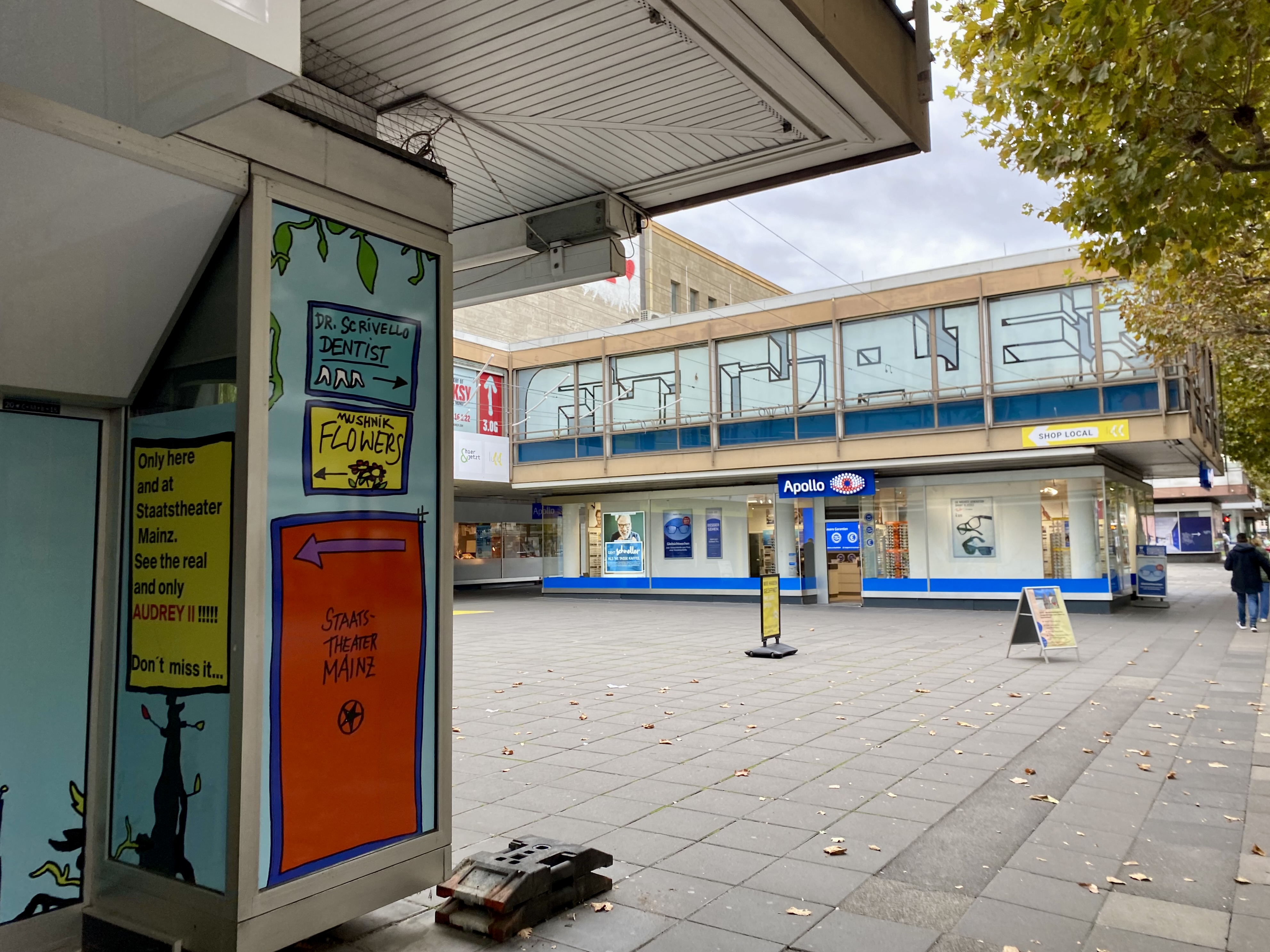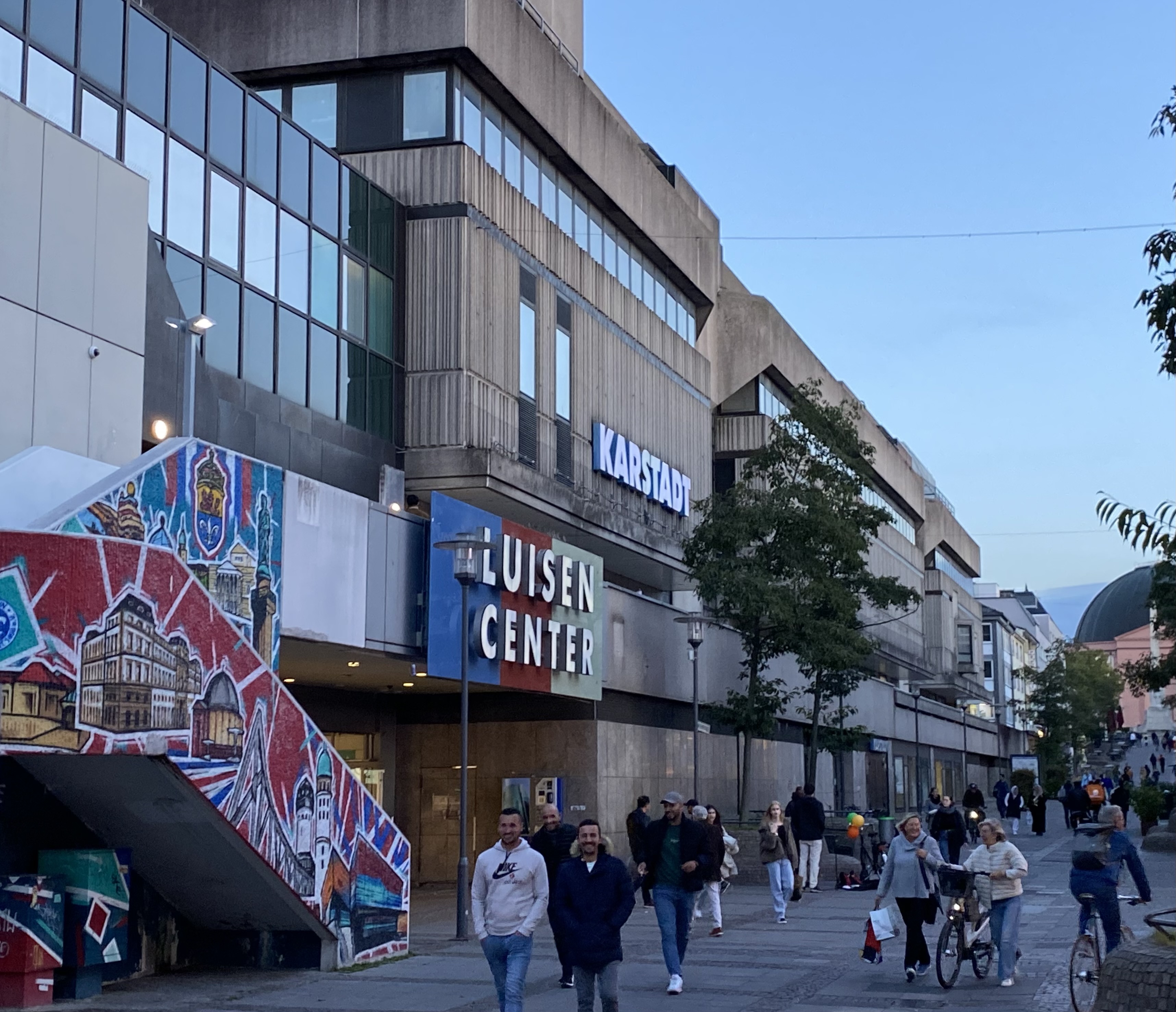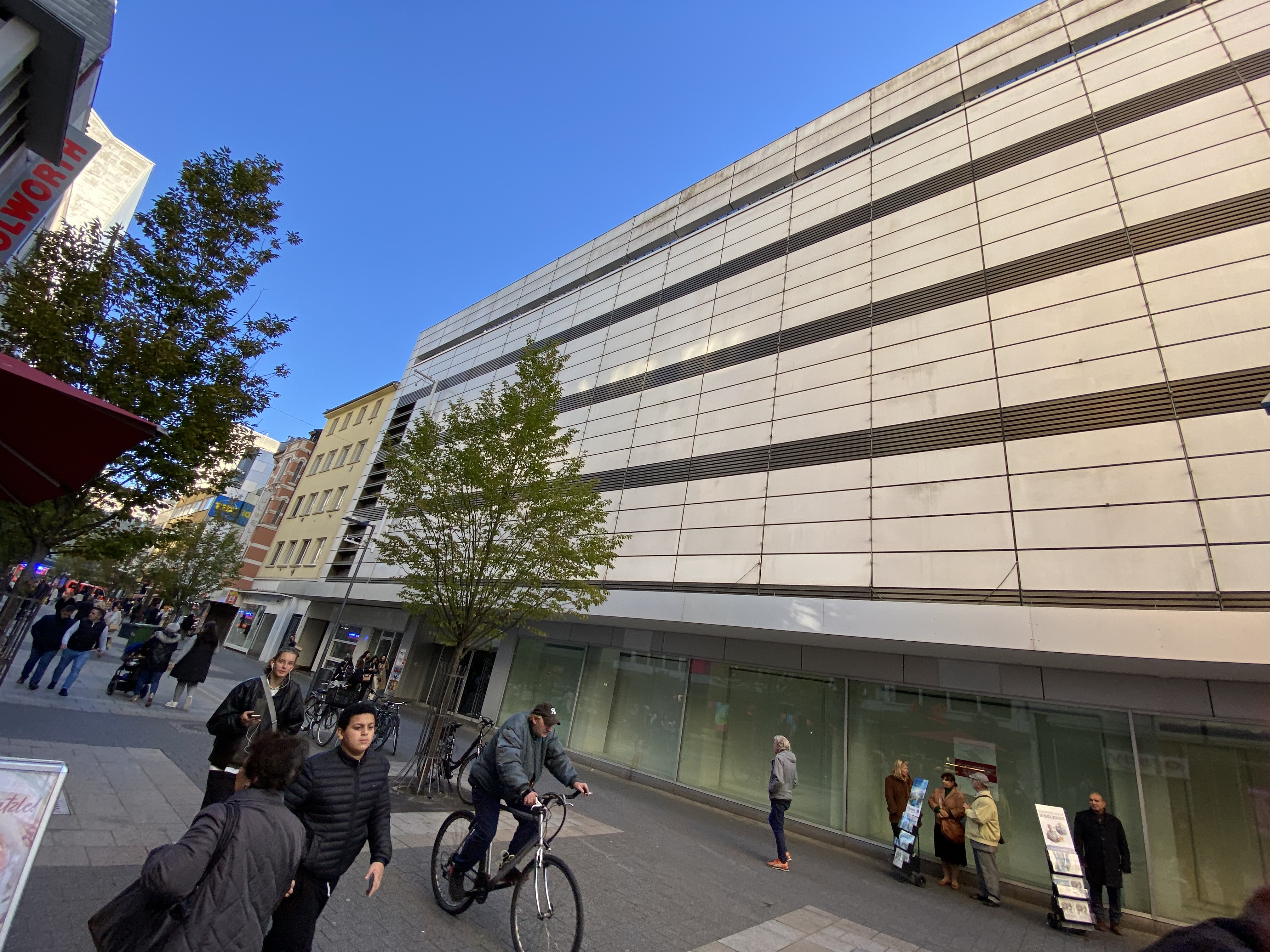 Dat leidt tot spannende beelden, zoals hier in Mainz en Offenbach. Het karkas van de Karstadt staat op de nominatie binnenkort gesloopt te worden. De Monsterachtige Galeria- Kaufhof staat na een dure renovatie als een enorm vuilwit blok te wachten op een tijd die waarschijnlijk nooit meer terugkomt. Een topstuk is de voormalige een leegstaande brutalistische Kaufhaus in Offenbach waar de lokale drugshandel het voor het zeggen lijkt te hebben gekregen. Ook de gigantische Karstadt van Darmstadt staat werkeloos te wachten tot zich weer een bestemming aandient. Dat is twijfelachtig. De logge onaangepaste Kaufhäuser deugen nergens voor, alleen voor inkopen. Of voor sloop. Beschermd stadsgezicht zit er waarschijnlijk niet in.