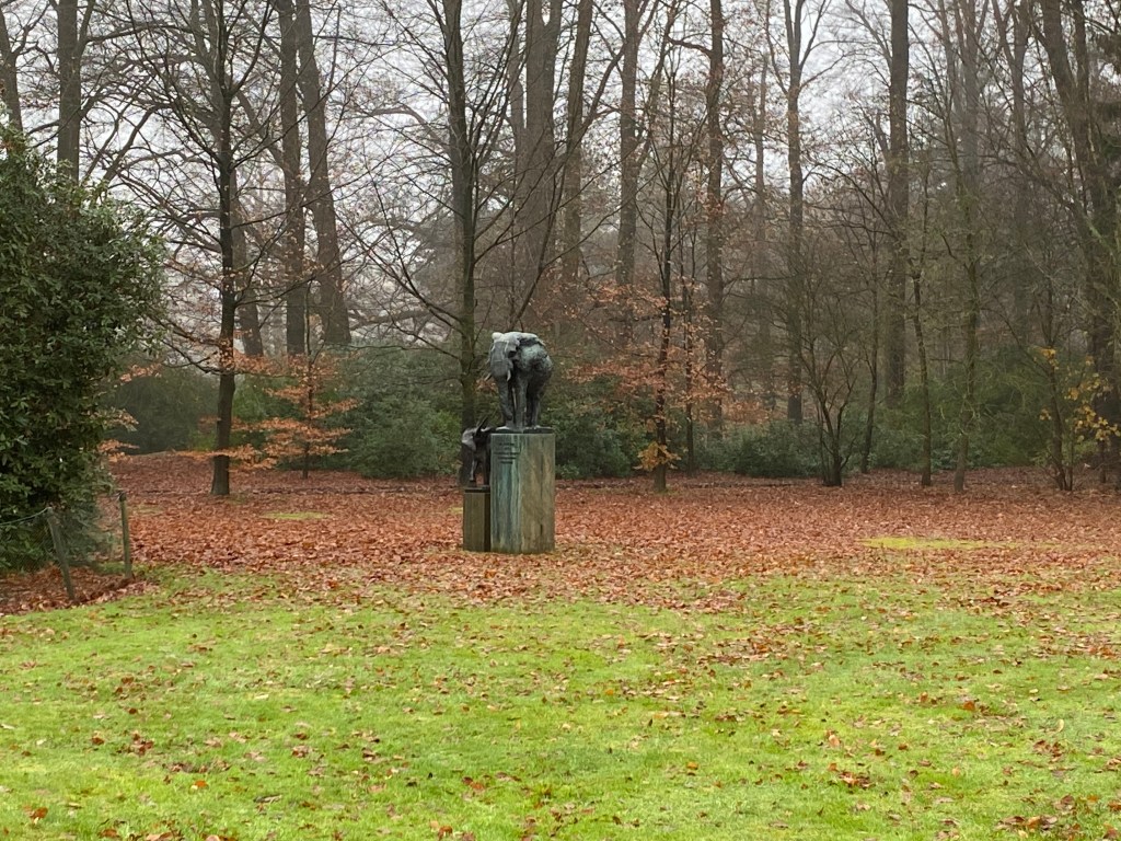 Het park is verlaten en getuigt van voorbije activiteiten. Twee bronzen olifanten herinneren aan Bernhard. Even verderop worden blijkbaar ’s zomers anjers gekweekt. De drukkende sfeer van vergankelijkheid wordt geaccentueerd door bordjes die aangeven wat hun ooit vanzelfsprekende betekenis was. Dat trieste gevoel wordt versterkt omdat deze objecten geen persoonlijke bezittingen zijn, maar uitbeelding geven aan de eigenschappen die collectief aan de bekleders van de hier gehuisveste functies werden toegeschreven. Het waren symbolen. Geen mensen. Met een publieke erfenis van tijdelijke waarde. En dat voel je overal.