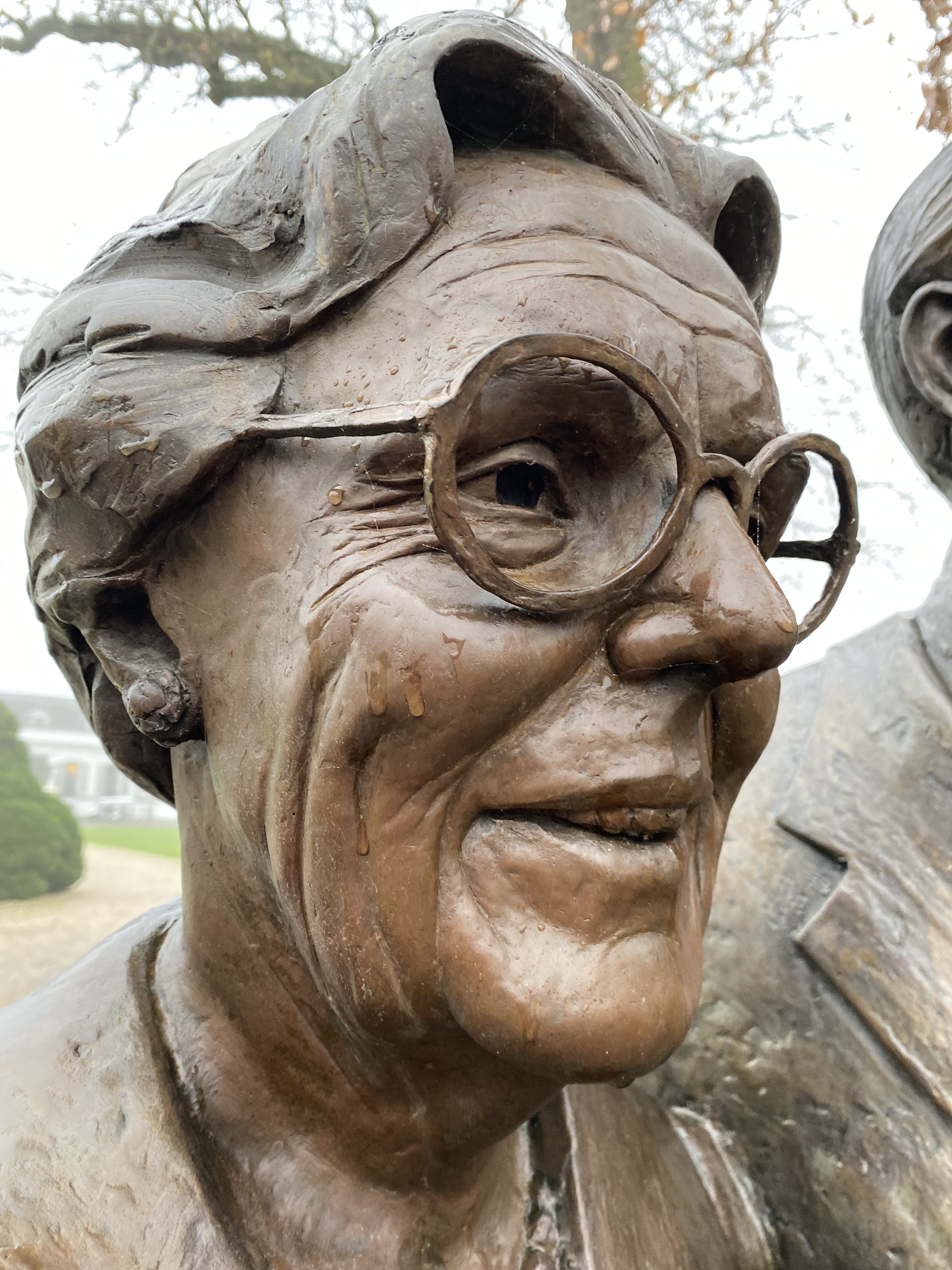 De bouw van paleis Soestdijk startte in 1650. Een lange reeks van verbouwingen, waarvan de (door komst van Anna Palowna) op het het tsarenpaleis van Pavlosk gëinspireerde vleugels wel het meest beeldbepalend zijn, gaven het zijn huidige vorm. Juliana en Bernhard bewoonden Soestdijk van 1937 toto 2004. Hun standbeeld is van de hand van Kees Verkade (1941-2020). De Het paleis biedt plaats aan tentoonstellingen en af en toe zijn de koninklijke vertrekken te bezoeken. Het defilé is verleden tijd, maar het is nog uitstekend te herbeleven op allerlei beeldmateriaal dat op youtube te vinden is.
